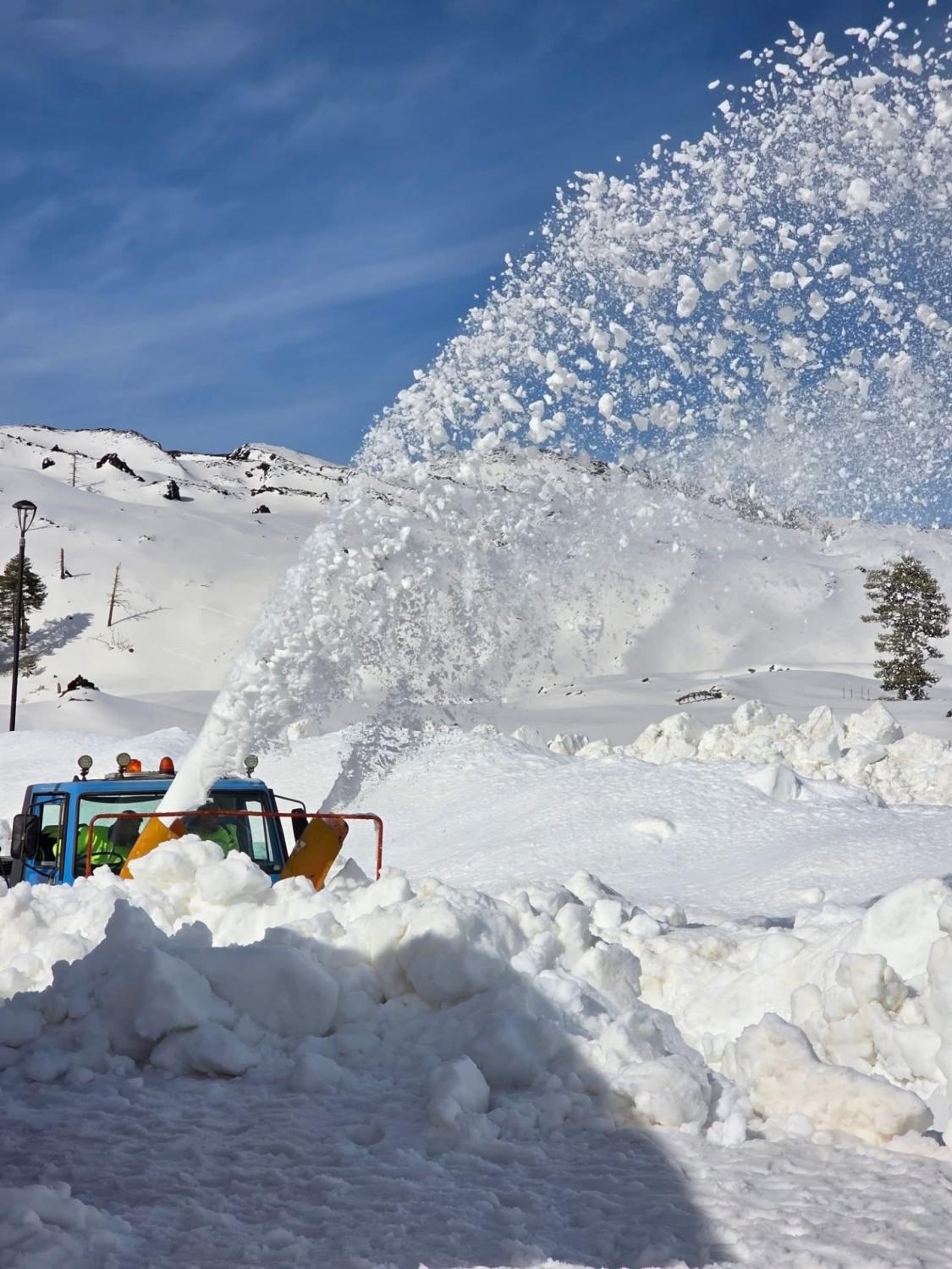 Scenario analogo, se non peggiore, quello che si sono trovati di fronte gli spazzaneve o meglio trattori il 29 gennaio scorso nella zona dei Crateri Silvestri, sempre sull’Etna, a circa 2000 metri di quota.