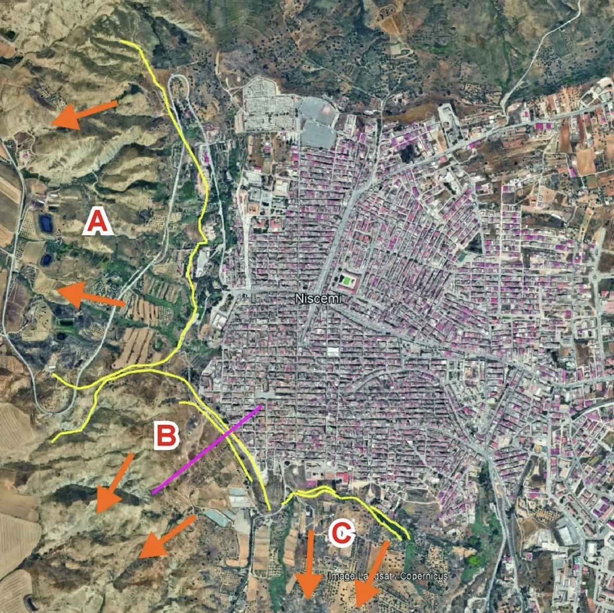 [23] Meteoscienza, 28 gennaio 2026 [online]. La frana di Niscemi, analisi di un contesto inesorabilmente predisposto all'innesco di movimenti franosi anche in futuro. < La frana di Niscemi, analisi di un contesto inesorabilmente predisposto all'innesco di movimenti franosi anche in futuro >