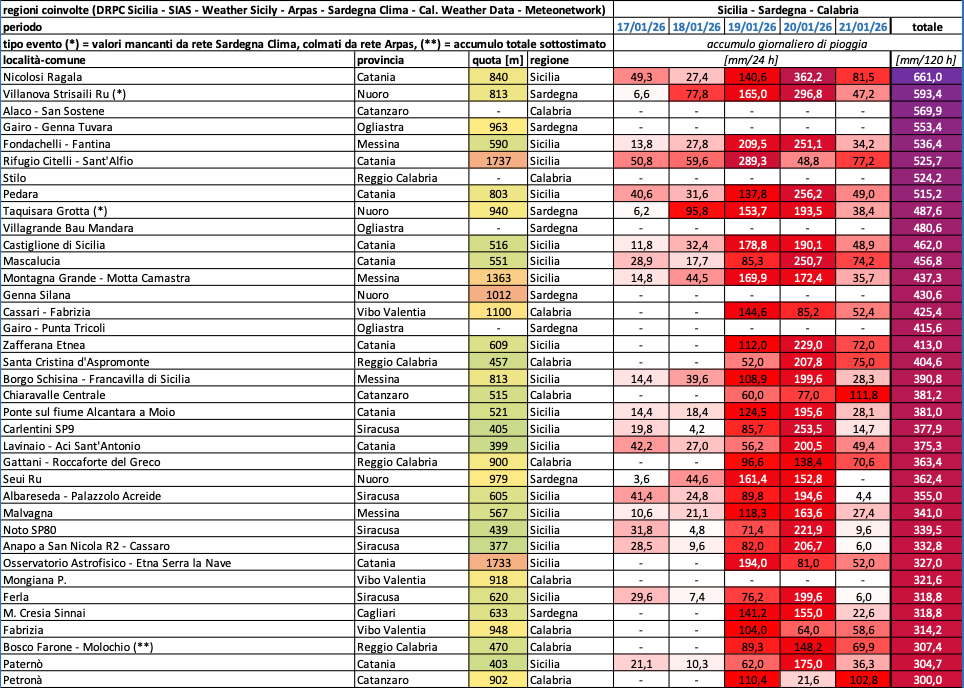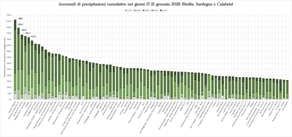 [17] Centro Funzionale Multirischi ARPACAL, 21 gennaio 2026 [online]. Evento pluviometrico eccezionale in Calabria: registrate precipitazioni senza precedenti. < Evento pluviometrico eccezionale in Calabria: registrate precipitazioni senza precedenti >
