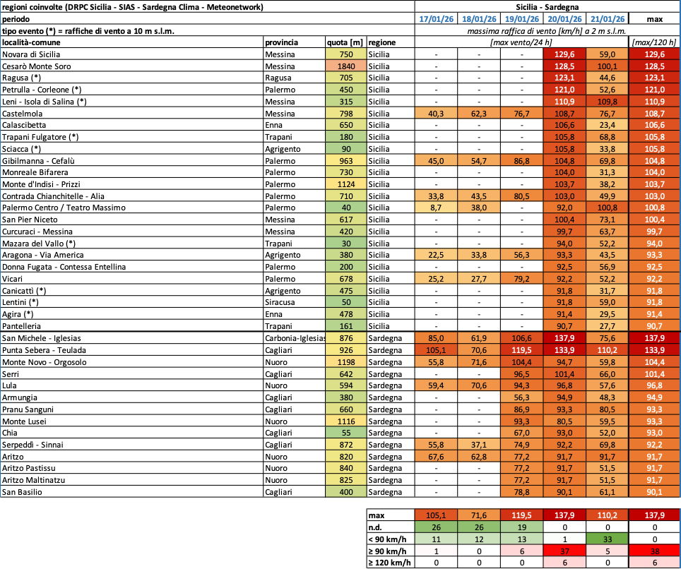 A cavallo tra la terza e la quarta settimana del gennaio 2026 una pesante ondata di maltempo ha interessato il Centro-Sud e le Isole Maggiori – probabilmente una delle più intense degli ultimi 50 anni per queste zone, non solo per portata ma anche per estensione – con la fase più critica tra lunedì 19 e martedì 20 gennaio.